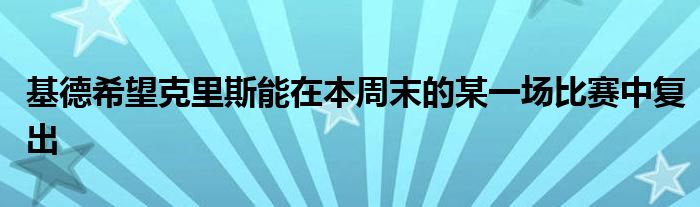 基德表示,他希望球隊(duì)的替補(bǔ)中鋒馬奎斯-克里斯能在本周末的某一場比賽中復(fù)出。