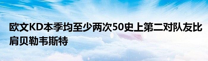 這樣一來,歐文和杜蘭特成為史上第二對同賽季均至少兩次50+的隊友,上一對還是1961-62賽季的埃爾金-貝勒和杰里-韋斯特。