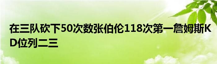 3月16日訊 湖人球星詹姆斯近日連續砍下2場50+,杜蘭特也在對陣尼克斯的比賽中斬獲53分。美媒YES統計了NBA歷史在三支不同球隊砍下50+總次數的球員排名,張伯倫以118次排名第一,詹姆斯和杜蘭特分列二三。