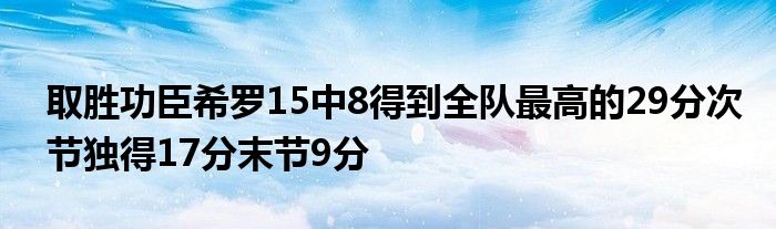 次節比賽當中,希羅獨得17分率隊保持優勢,末節關鍵時刻他連得7分,單節貢獻9分幫助球隊力克對手。