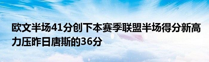 41分為本賽季半場最高分,力壓昨天唐斯創下的半場36分。