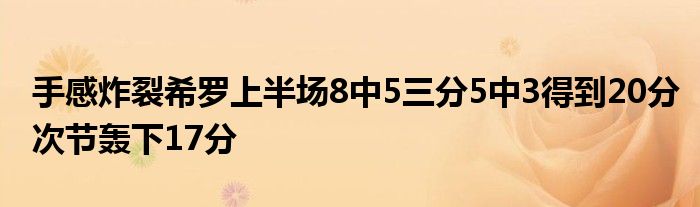 次節比賽當中,希羅里突外投獨得17分,上半場比賽中,希羅替補出戰17分13秒,投籃8中5,三分5中3,罰球9中7,得到20分1籃板。