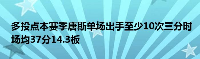 據(jù)森林狼隨隊記者Dane Moore統(tǒng)計,本賽季當(dāng)唐斯在單場比賽出手至少10次三分時,他場均可以得到37分14.3籃板。