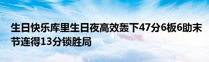 庫里在自己的生日夜高效發揮,25投16中,三分14中7,罰球8中8,轟下47分6籃板6助攻帶隊取勝,第四節比賽庫里7分多鐘上場,連得13分鎖定勝局!