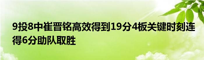 本場比賽,崔晉銘有著出色的發揮,全場他出戰42分鐘,9投8中得到了19分4板1助,在比賽的關鍵時刻,崔晉銘連得6分助隊取勝。