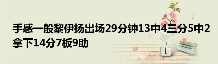本場(chǎng)比賽,福建小將黎伊揚(yáng)出場(chǎng)29分鐘,投籃13中4,三分5中2,罰球5中4,拿下14分7籃板9助攻,不過出現(xiàn)5次失誤。
