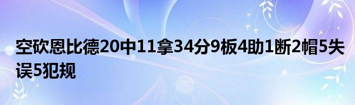 本場,恩比德出戰(zhàn)36分鐘,投籃20中11,三分3中3,罰球10中9,貢獻34分9籃板4助攻1搶斷2蓋帽,5失誤+5犯規(guī)。
