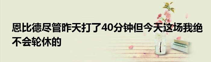 恩比德昨天和魔術的比賽打了41分鐘,盡管如此,他表示自己這場比賽絕不會輪休的。