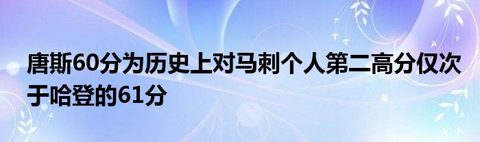 據統計,唐斯本場60分為NBA歷史上對陣馬刺個人所砍下的第二高分,僅次于哈登的61分。