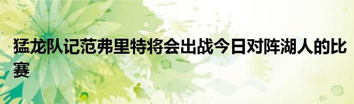 據猛龍隊隨隊記者報道,范弗里特將會出戰這場比賽。
