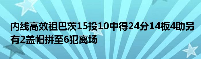 雖然輸球,但祖巴茨還是有著不俗的發揮,全場他出戰36分鐘,15投10中得到了24分14板4助2蓋帽。最終他拼至6犯離場。