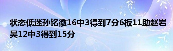 全場比賽,孫銘徽出戰(zhàn)45分14秒,投籃16中3,三分7中0,罰球2中1,得到7分6籃板11助攻3搶斷,正負(fù)值-8。