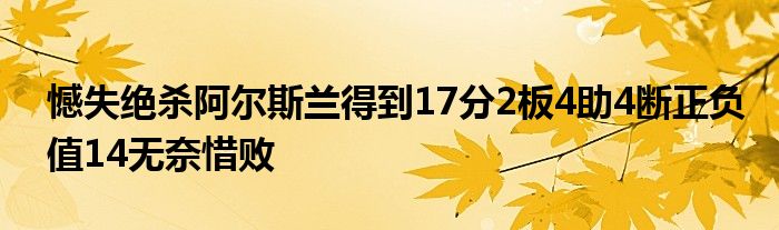 阿爾斯蘭第四節得到5分1籃板,可惜錯失了最后的絕殺機會,新疆遺憾落敗。