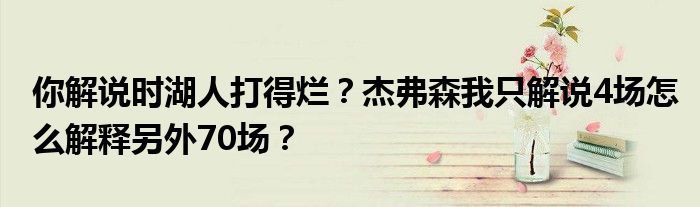 杰弗森回復道:“我只解說了4場他們的比賽,你怎么解釋另外的70場?”