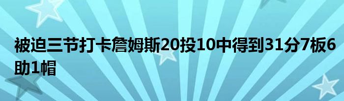 湖人球星詹姆斯僅出戰三節比賽,20投10中,三分球11中5,7罰6中得到了31分7板6助1帽的數據。