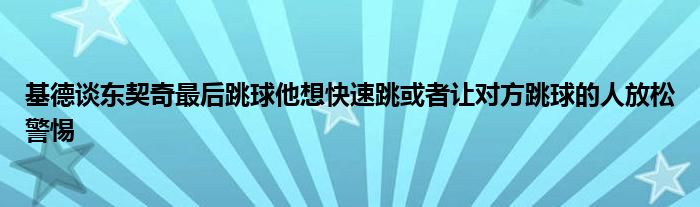 東契奇主動前往與對方內線羅伯特-威廉姆斯跳球,對此基德說:“他覺得自己想要快速跳球,我想這就是他的策略,或者說他想去讓對方跳球的人放松警惕。”