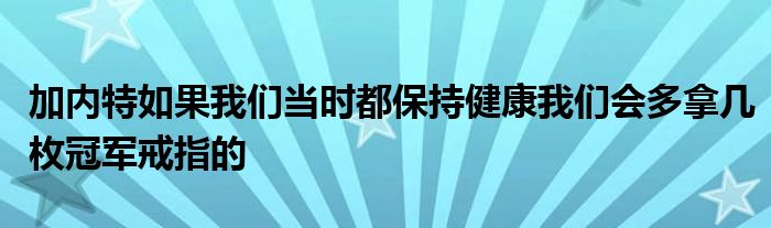 在退役儀式上,凱文-加內特表示:“我愛我的球隊,這是一場神奇的旅程。如果我們當時都保持健康,我們會多拿幾枚冠軍戒指的。”