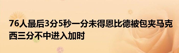最后9.4秒,76人底線發(fā)球給到恩比德,后者遭遇包夾分球馬克西三分不中,雙方進入加時。