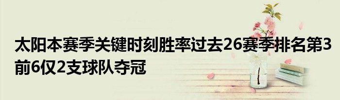 3月14日訊 今日上午9點(diǎn),太陽(yáng)將坐鎮(zhèn)主場(chǎng)迎戰(zhàn)湖人。轉(zhuǎn)播方賽前曬出了太陽(yáng)本賽季關(guān)鍵時(shí)刻的勝率。