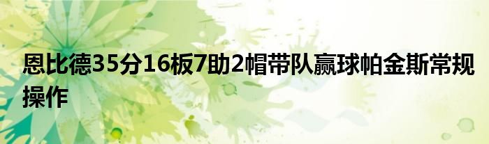 76人球星恩比德此役出戰41分鐘,28投9中,三分球5中2,17罰15中,得到35分16板7助1斷2帽的華麗數據。
