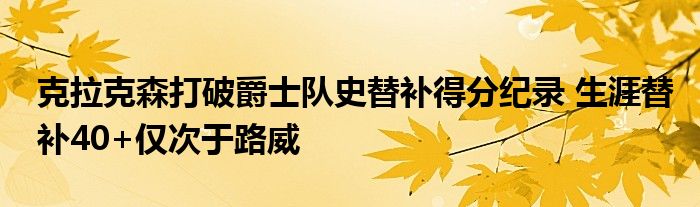 克拉克森打破了由約翰-德魯保持的爵士隊(duì)史替補(bǔ)得分紀(jì)錄。