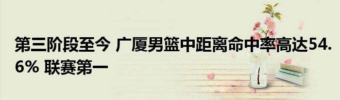 據統計,第三階段至今,廣廈的中距離占比從之前的25.6%上升至34.2%,雖然中距離是得分效率比較低的區域,但廣廈男籃第三階段至今中距離命中率高達54.6%,聯賽同期內第一。