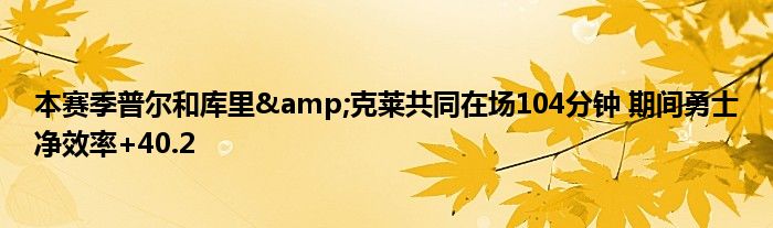 據統計,本賽季普爾和庫里、克萊一同在場104分鐘,期間勇士進攻效率126.0,防守效率85.8,凈效率高達+40.2。