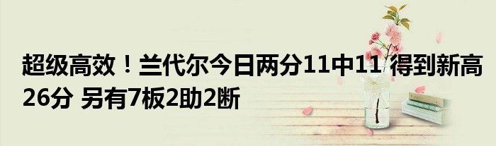 馬刺中鋒蘭代爾今日替補(bǔ)出戰(zhàn)打出超高效表現(xiàn),此役他出場(chǎng)34分42秒,投籃15中12,三分4中1,罰球2中1,得到生涯新高的26分,另有7籃板2助攻2搶斷入賬,且只有1個(gè)失誤,正負(fù)值-5。