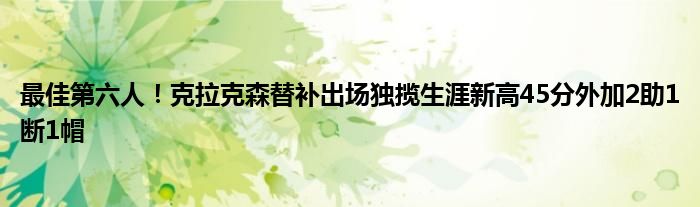 此役,爵士球員克拉克森替補出場35分半,21投15中,三分球13中7,8罰全中砍下了全場最高也是個人生涯新高的45分外加2助攻1斷1帽率隊取勝。