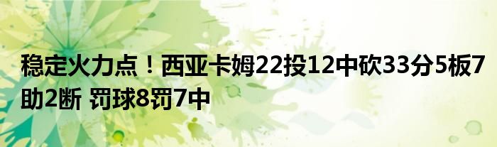 本場比賽,西亞卡姆有著高效發揮,全場他出戰36分鐘,22投12中得到了33分5板7助2搶斷,在上半場比拼中,他就得到了23分。