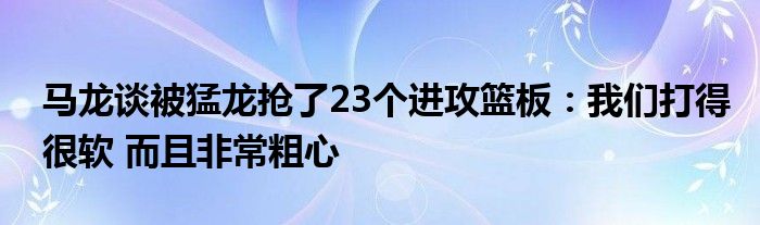 談到被猛龍搶了23個進攻籃板,馬龍表示:“我覺得我們今晚打得很軟,也打得很粗心。”