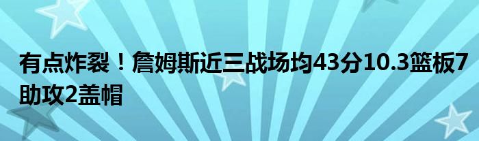 在最近的三場比賽中,詹姆斯場均得到43分10.3籃板7助攻2蓋帽,三項命中率分別為56.1%、44.8%和88.9%。
