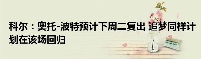 談到球隊目前的傷病情況,科爾表示:“奧托-波特今日參加了訓練,他的感覺已經好多了,目前的計劃是他會在下周二對陣奇才的比賽中復出。”