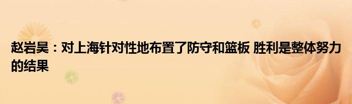 趙巖昊表示:“對手也是之前的聯賽第一,我們有針對性地布置了防守和籃板。今天大家打得非常拼非常不錯,我覺得勝利是大家整體努力的結果。繼續往前走,繼續努力,比賽還沒有完。”