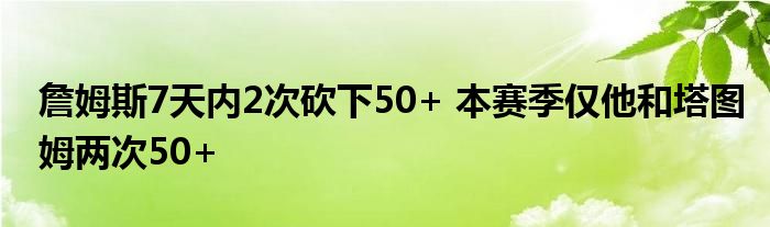 據統計,這是詹姆斯在過去7天內第二次砍下50+,他在3月6日面對勇士的比賽中曾經砍下過56分,本賽季僅他和塔圖姆兩次砍下50+。