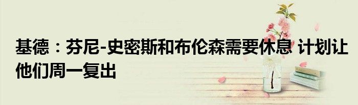 談到芬尼-史密斯和布倫森的缺席,基德說道:“他們需要休息,芬尼-史密斯整個賽季都在為我們做這一切。還有布倫森,我們需要給他買一套橄欖球球衣來保護他,因為他的膝蓋老是被撞到。我們打算讓他倆在周一對陣凱爾特人的比賽中復出?!?/p>