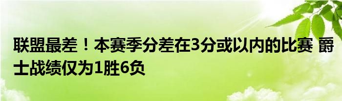 至此,本賽季最終分差在3分或以內的比賽,爵士戰績僅為1勝6負,聯盟最差。