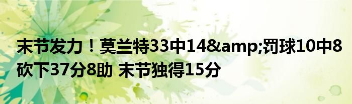 末節比賽當中,莫蘭特連續殺傷單節獨得15分,最終率隊力克對手拿下勝利。