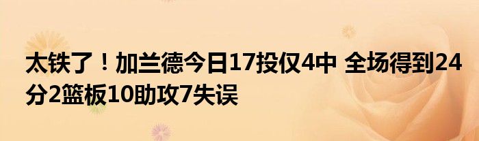 本場比賽,騎士球員加蘭德出戰(zhàn)36分鐘29秒,17投僅4中,三分6投1中,罰球16罰15中,全場得到24分2籃板10助攻1搶斷,此外還有7次失誤。