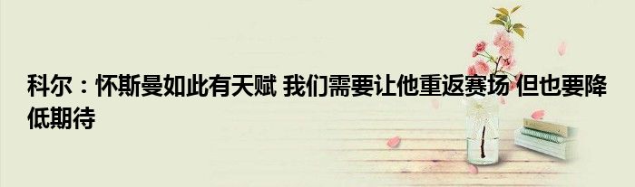 在采訪中,科爾談到了懷斯曼??茽柋硎荆骸皯阉孤侨绱擞刑熨x,我們需要給他機會讓他重返賽場?!?/p>