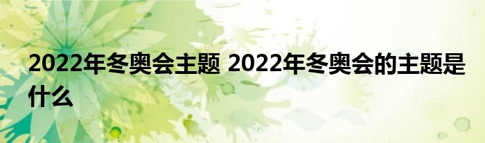 大家好,小美來為大家解答以上問題。2022年冬奧會主題,2022年冬奧會的主題是什么很多人還不知道,現在讓我們一起來看看吧!