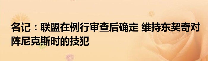 3月12日訊據名記Tim MacMahon報道,聯盟辦公室在例行審查后確定,維持東契奇在對陣尼克斯的技術犯規判罰。