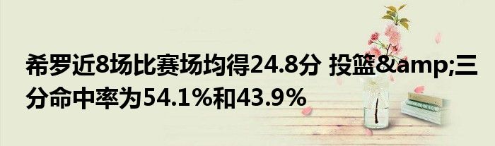 自全明星假期后,希羅在近8場比賽中場均能得到24.8分4.6籃板3.7助攻,投籃命中率為54.1%,三分命中率為43.9%。