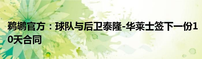 3月12日訊鵜鶘官方宣布,球隊與后衛(wèi)泰隆-華萊士簽下一份10天合同。