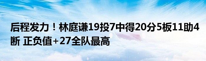 本場比賽,林庭謙在上半場一分未得的情況下后程發(fā)力,下半場得到20分。全場他出戰(zhàn)40分鐘,19投7中得到了20分5板11助4搶斷,他的正負(fù)值為+27全隊最高。