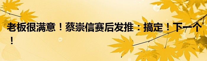 籃網老板蔡崇信賽后發推寫道:“搞定!下一個!”