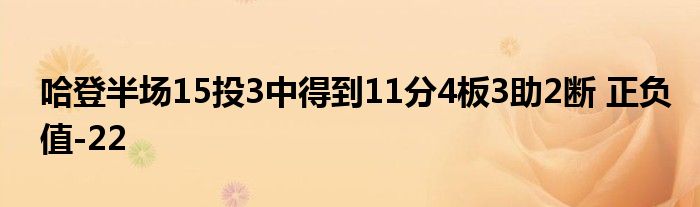 半場比賽哈登出戰(zhàn)20分21秒,15投3中,三分6中3,罰球2中2,砍下11分4籃板3助攻2搶斷,出現(xiàn)2次失誤,正負(fù)值-22。