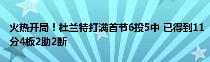 截至首節結束,籃網球星杜蘭特打滿首節,6投5中,其中三分2中1,已得到11分4籃板2助攻2搶斷,正負值為+17。