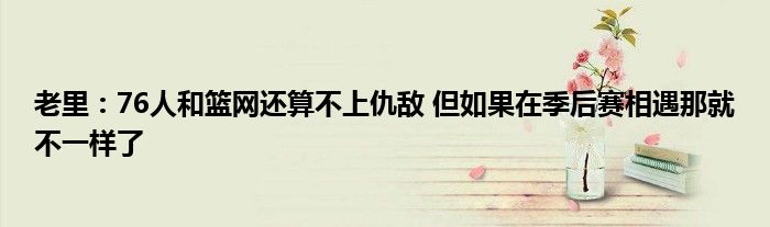 當(dāng)被問(wèn)到哈登本西交易后,是否會(huì)讓籃網(wǎng)和76人成為仇敵,老里表示:“現(xiàn)在還不算,我知道紅襪隊(duì)和洋基隊(duì)、杜克和北卡羅來(lái)納這些算是仇敵,但如果我們?cè)诩竞筚愊嘤瞿蔷筒灰粯恿恕!?/p>