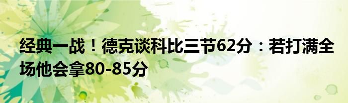 “這很有趣,科比在我們面前拿了63分,但是他只打了三節(jié),他沒打末節(jié)因?yàn)樗麄冾I(lǐng)先了20-25分,結(jié)果之后不久他對上猛龍就拿了81分。我敢確定,如果對陣我們的那場比賽他打滿了全場,他會拿下80-85分。”